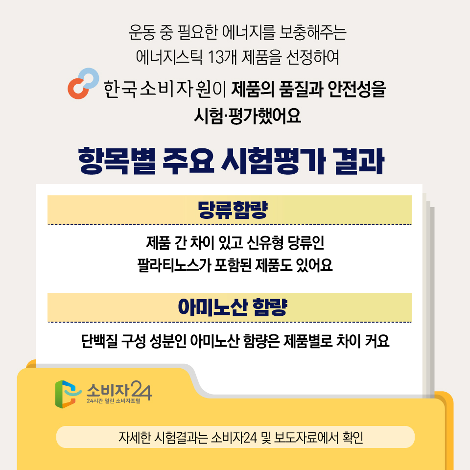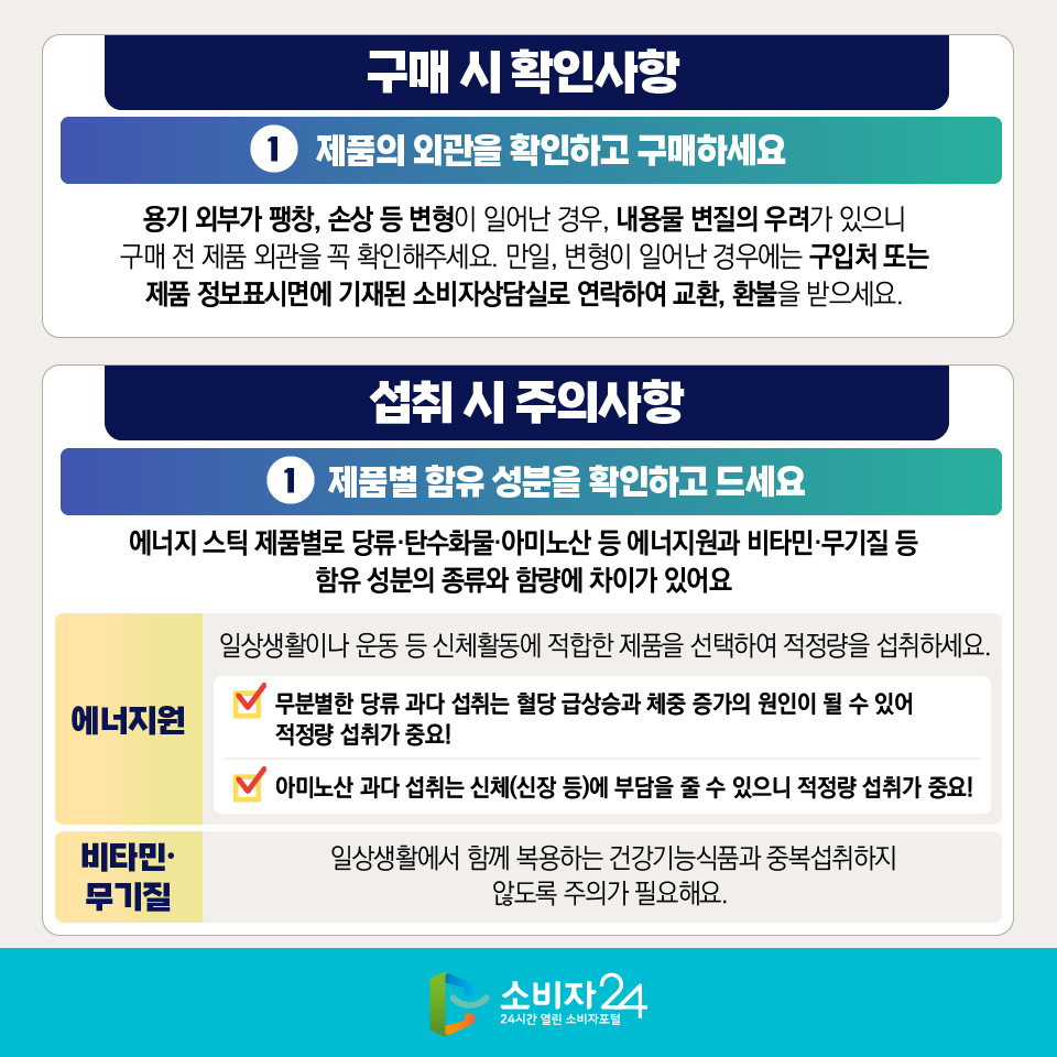 카드뉴스 홈 소비자정보 카드뉴스 에너지 스틱 품질비교 결과, 제품별 함유 성분 차이 있어 운동 유형에 맞게 선택해야해요 게시물 정보 작성자 공정경제과 목록보기 다음글 노트북 품질비교 결과, 휴대성·구동속도 등 주요 성능, 제품 간 차이 있어요 이전글 가습기 제품·가습방식에 따라 가습량, 유지관리비용, 소음 등에 차이 있어요