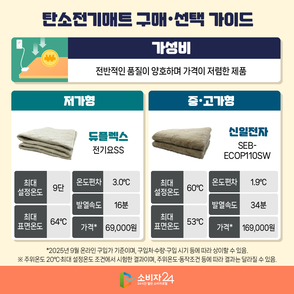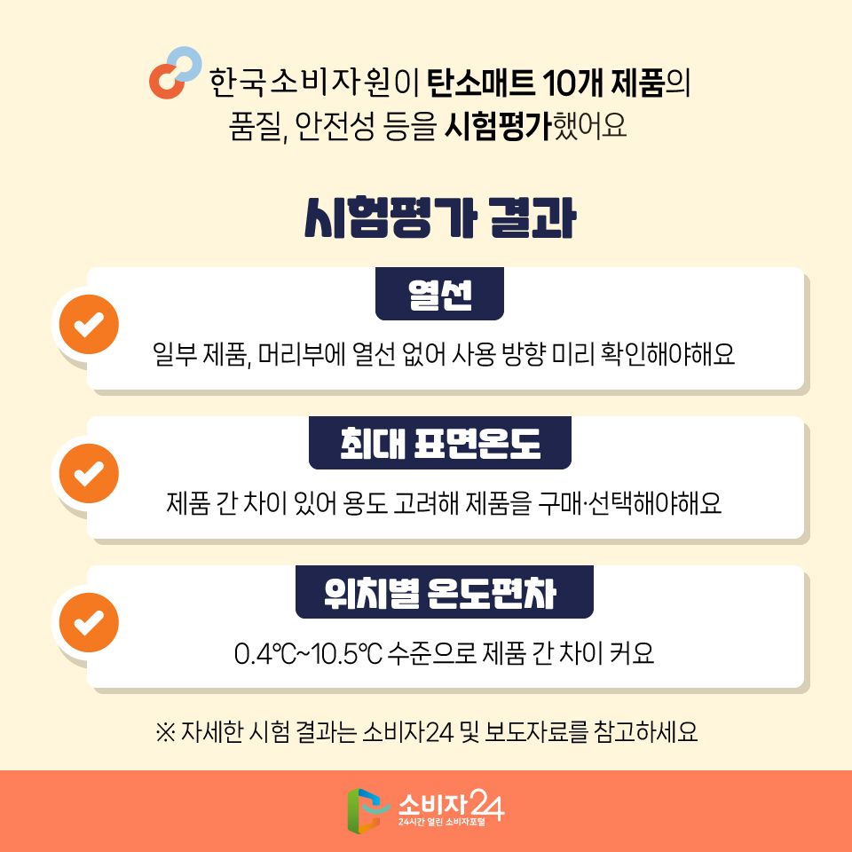 카드뉴스 홈 소비자정보 카드뉴스 탄소전기매트 품질비교 결과, 최대 표면온도·온도편차·발열속도 등 핵심 성능 차이 있어요 게시물 정보 작성자 공정경제과 목록보기 다음글이 없습니다. 이전글 노트북 품질비교 결과, 휴대성·구동속도 등 주요 성능, 제품 간 차이 있어요