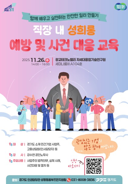 공지사항 홈 성평등옴부즈만 소식 공지사항 직장 내 성희롱 예방 대응을 위한 민간기업 교육 안내 게시물 정보 작성자 관리자 ※ 교육 안내문은 붙임 첨부파일 참고하시기 바랍니다. 첨부파일 직장 내 성희롱 예방 대응을 위한 민간기업 교육 안내문.pdf 바로보기 바로듣기 목록보기 다음글이 없습니다. 이전글 [보도자료]경기도, 성희롱 피해 직원에 의료비 지원…