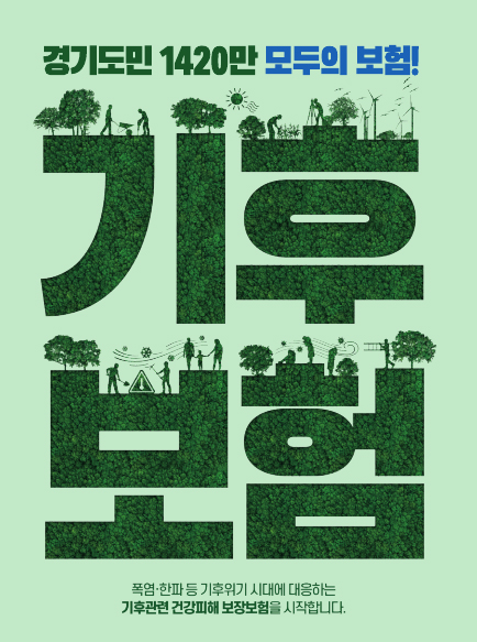 ‘경기 기후보험’은 폭염, 집중호우, 태풍 등의 기후재해로부터 도민들의 피해를 줄이고 기후취약계층을 추가로 지원하여 기후 격차를 줄이기 위해 지난 4월 11일부터 시행된 정책보험이다. 경기도에 주소를 둔 도민이라면 자동가입되므로 별도로 가입신청을 하지 않아도 된다. 즉, 경기도민은 피해를 입었을 경우 보험금 신청만 하면 된다. 또한, 기상특보가 발령된 국내 어느 지역에서라도 사고가 발생하면 보험약관에서 보장하는 사고위로금을 보장받을 수 있다. 일반도민은 4개 항목(온열·한랭질환·특정감염병 진단비, 기후재해 사고위로금)이 보장되며, 기후취약계층(보건소에서 관리하는 방문건강관리사업 대상)은 특약으로 5개 항목(온열·한랭질환 입원비, 의료기관 교통비, 긴급이·후송, 기후재해 정신적 피해)이 추가로 보장된다.