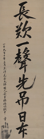 길이 135.5㎝, 폭 41.5㎝ 크기의 명주천에 쓴 ‘장탄일성 선조일본’은