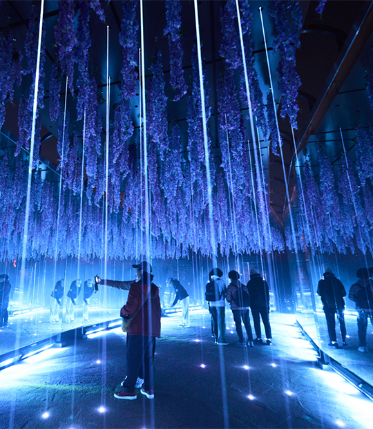 부천 루미나래 도화몽은 원미구 춘의동 자연생태공원 내 1.5km 구간 숲길에 미디어아트와 경관조명을 입혀 환상적인 야경을 자랑하는 곳이다. 과거 복사골이라는 별칭을 얻을 정도로 복숭아 특산지로 명성을 날린 부천의 이야기를 수려한 영상과 화려한 조명으로 풀어냈다. 신비로운 연분홍빛 복사꽃이 하늘에 흩날리는 밤을 시작으로 무지개, 장대비, 천둥, 눈과 오로라 등 다양한 빛의 향연이 12개 테마로 나뉘어 펼쳐진다. 관람객은 약 90분 동안 숲길을 걸으며 다채로운 미디어아트 연출을 체험할 수 있다. 첫 구간인 ‘기상낙원’을 시작으로 빛이