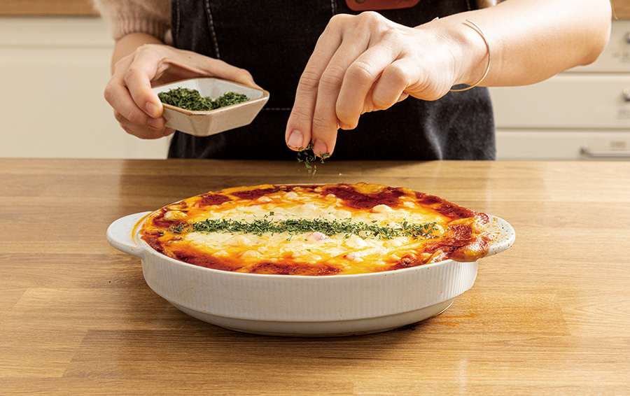 오븐에서 꺼낸 뒤 파슬리 가루를 뿌린다.