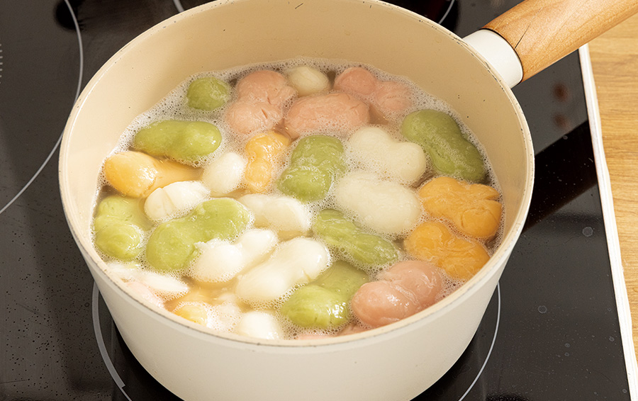 오색 조랭이떡을 넣고 떡이 익으면 불을 끈다.
