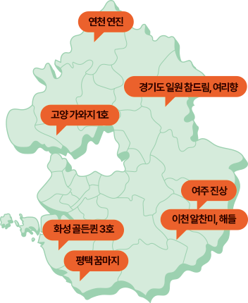 이제 쌀은 단순히 신체에 에너지를 공급하고 배를 채우는 식량이 아니라 맛과 식감, 향, 기능성까지 즐기는 ‘미식 재료’로 인식되고 있다. 경기도는 이러한 흐름에 발맞춰 품질 차별화에 중점을 둔 새로운 쌀 품종 개발을 활발히 진행 중이다. 경기미의 대표 얼굴이 된 참드림을 비롯해 꿈마지·맛드림·정드림·연진 등이 고품질 쌀로 활발히 보급되고 있으며, 멥쌀과 찹쌀의 중간 정도로 아밀로스 함량을 가진 수찬미·여리향·가와지 1호 같은 중간찰 품종도 재배 면적이 빠르게 늘고 있다. 이제 경기도 쌀은 단순히 생산량이 아닌, 다양한 품질을 중심으로 재편되고 있다.