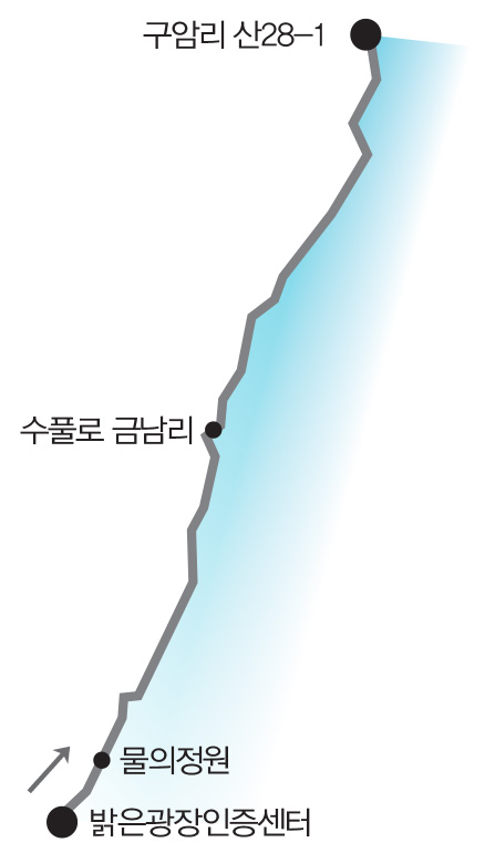 북한강의 아름다움을 한 아름 품으며 내달릴 수 있는 곳. 바로 북한강 자전거길이다. 남한강보다 폭은 좁지만 물이 깊고 맑으며, 언제나 수려한 풍광을 자랑하는 북한강. 유속이 빨라 둔치가 형성되지 않은 까닭에 오르락내리락해야 하는 언덕 위를 달려야 하지만, 그만큼 라이딩의 묘미를 크게 느낄 수 있다. 자연이 만든 매력적인 길에서는 땀 흘리는 즐거움과 시원한 바람을 맞는 재미가 함께 찾아오기 때문이다. 특히 북한강 자전거길의 멋 중 멋은 ‘물의정원’이다. 아름다운 강변 산책로로 알려진 이곳에서는 물이 주는 고요한 평화를 누릴 수 있다. 출발지(밝은광장인증센터)와 가깝지만 도착지로 삼아도 좋다. 그 어떤 명화보다 매혹적이니.