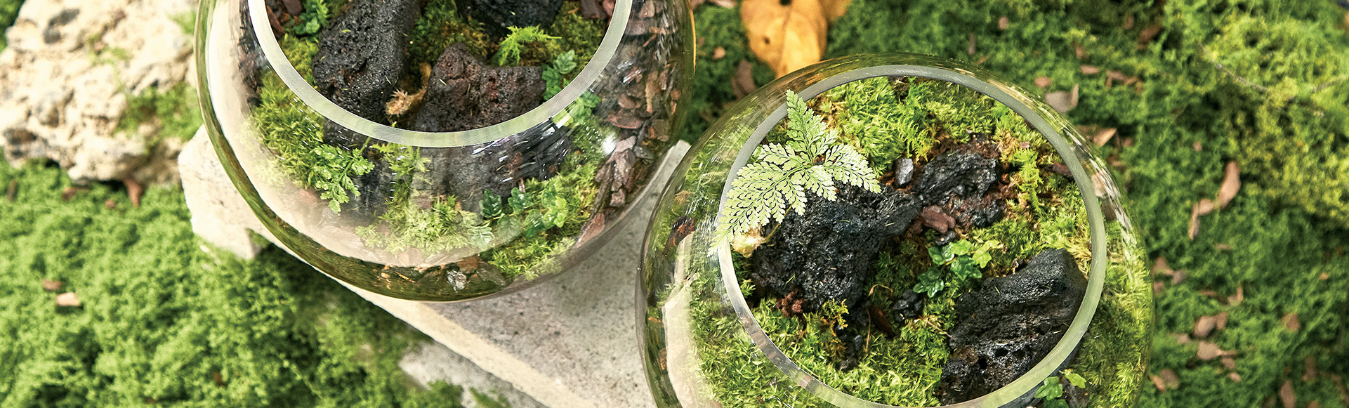 작은 유리병 속에 담긴 초록빛 세상은 바쁘게 흘러가는 일상을 잠시 멈추고 숨을 고르게 한다.