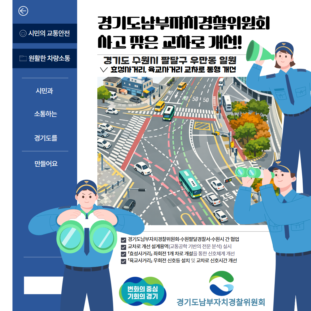 도민의 교통 안전을 위하여 경기도남부자치경찰위원회는 항상 힘쓰겠습니다.