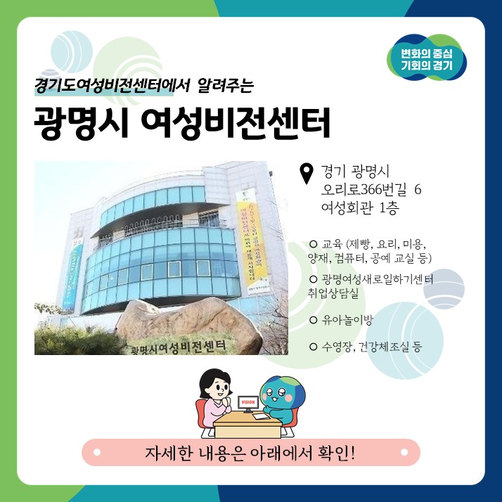 경기도여성기관 소식·홍보 홈 여성소통 경기도여성기관 소식·홍보 광명시여성비전센터 수강생 모집 (마감) 게시물 정보 작성자 여성비전센터 ※ 수강 신청 및 자세한 내용은 https://woman.gm.go.kr/www/index.do 참고 부탁드립니다 첨부파일 광명시 여성비전센터 수강생 모집.pdf 바로보기 바로듣기 목록보기 다음글 수원시 여성문화공간 - 휴 수강생 모집 (~12월) 이전글 성남시여성플러스센터 수강생 모집 안내 (~9.18) 이 게시물은 "공공누리 제 3유형(출처표시 + 변경금지)" 조건에 따라 자유롭게 이용이 가능합니다.